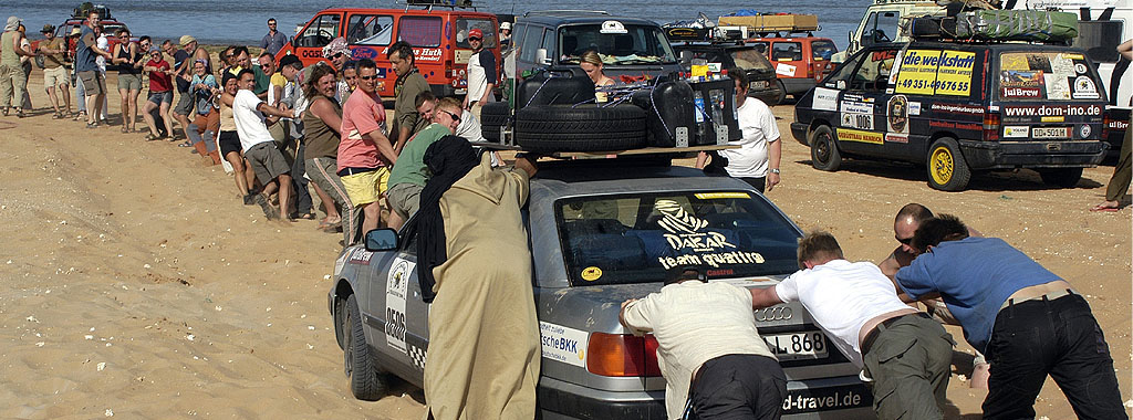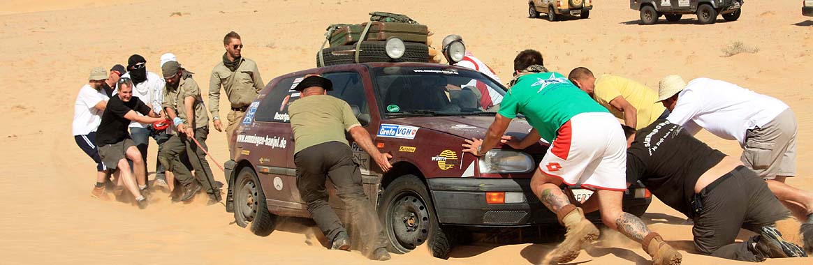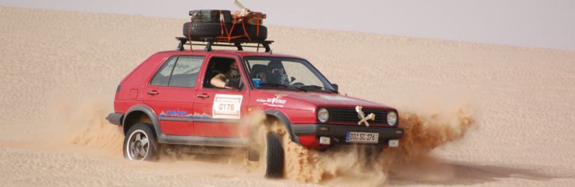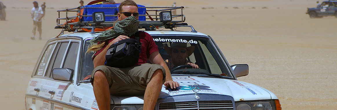 Schrottauto kaufen, in Dresden losfahren, 7200 km Rallye durch die Wüste vorbei an Dakar nach Gambia, Auto versteigern, Geld spenden und dann zurückfliegen