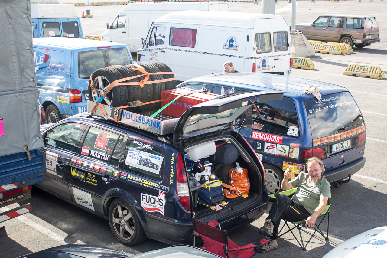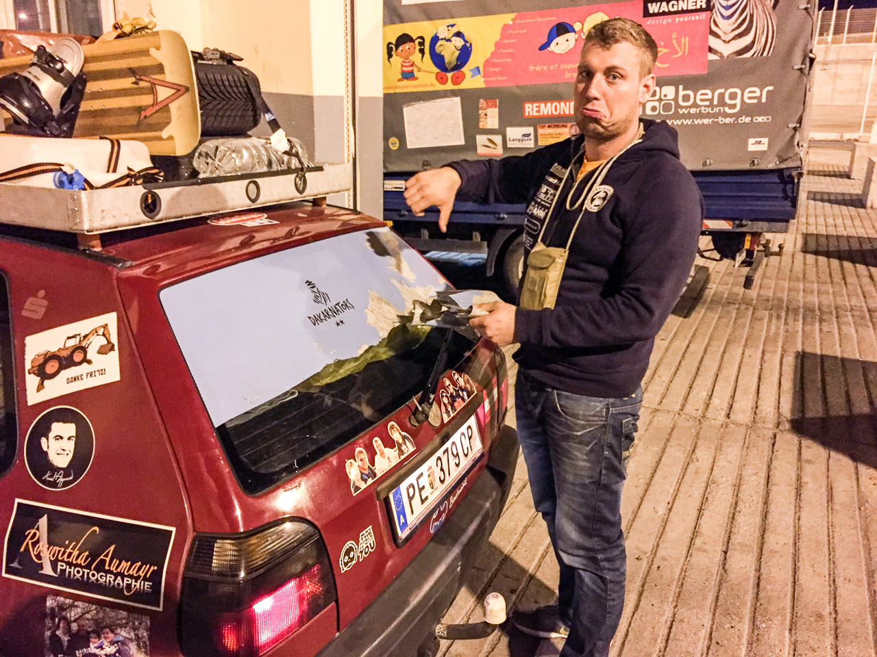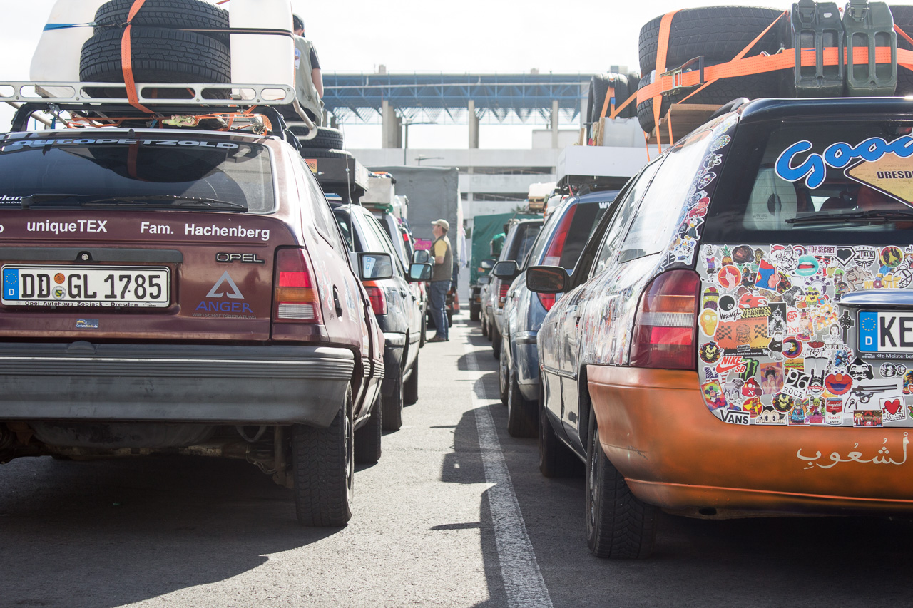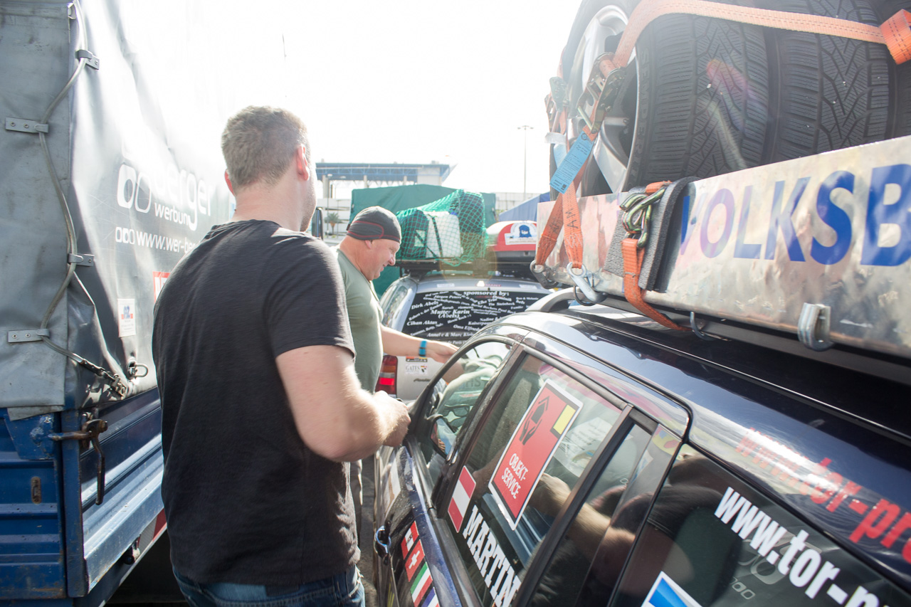 Herausforderung zu meistern: Wir waren das letzte Auto am Zoll,