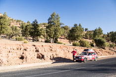 Fahrer Michael ist sofort ausgehüpft, um das Problem fachmännisch