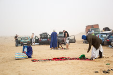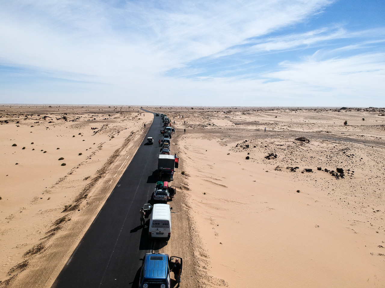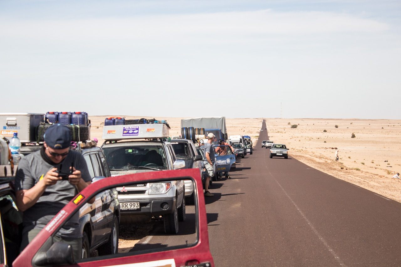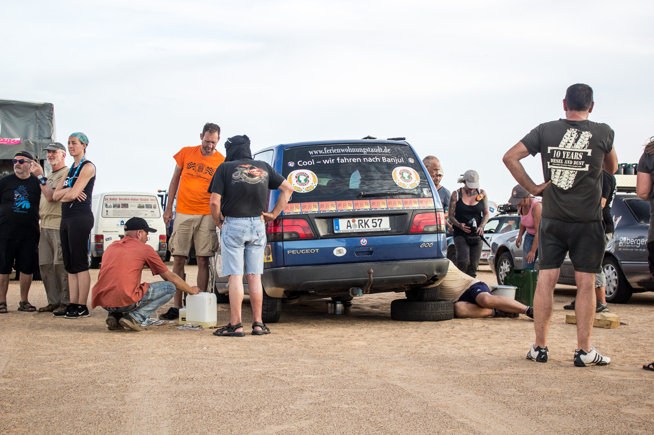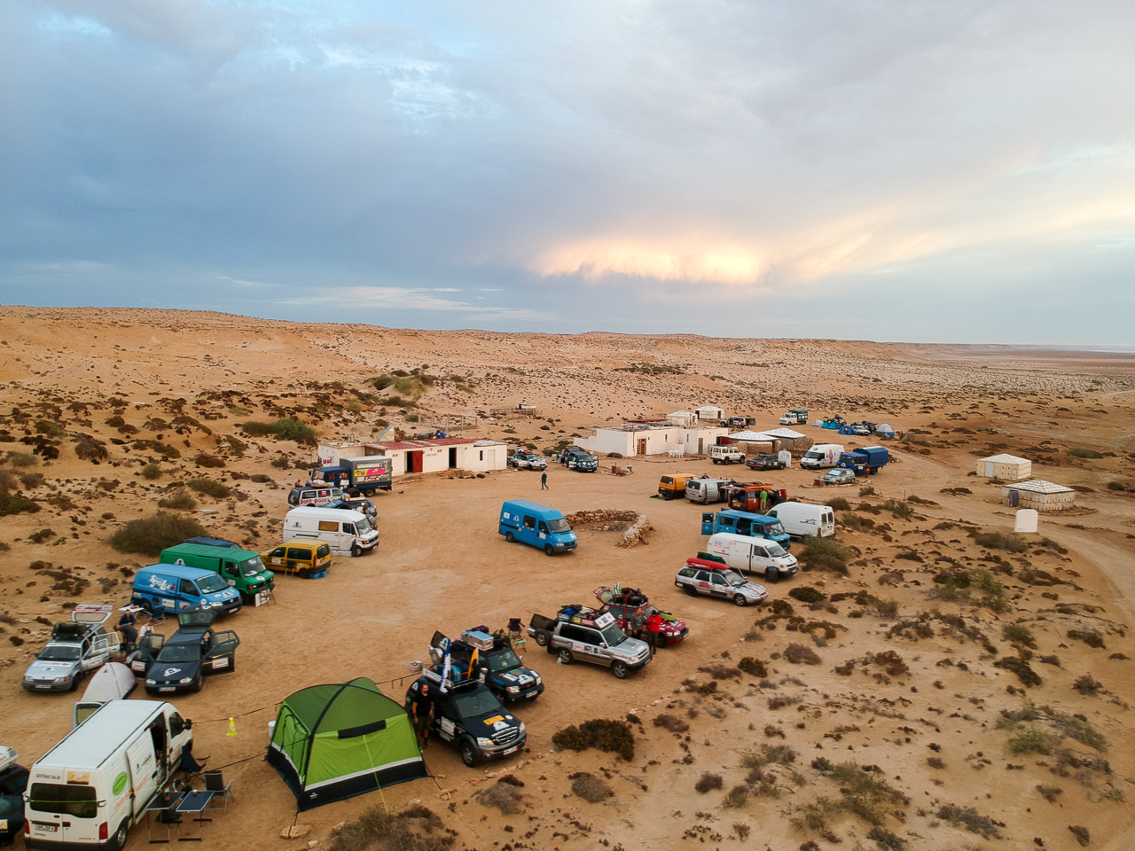 Tankstelle, wo alle Teams sich zur Einreise nach Mauretanien