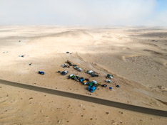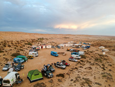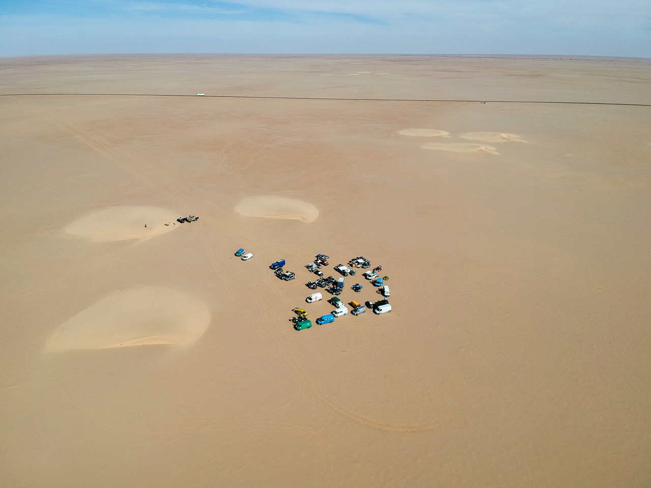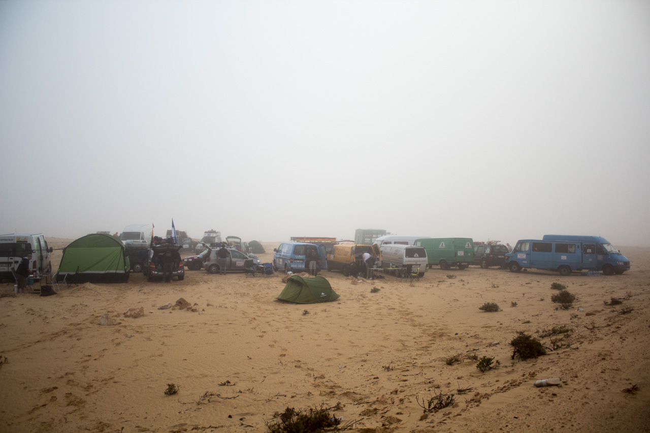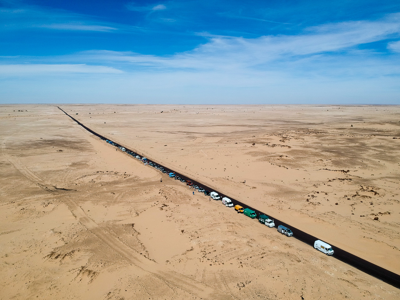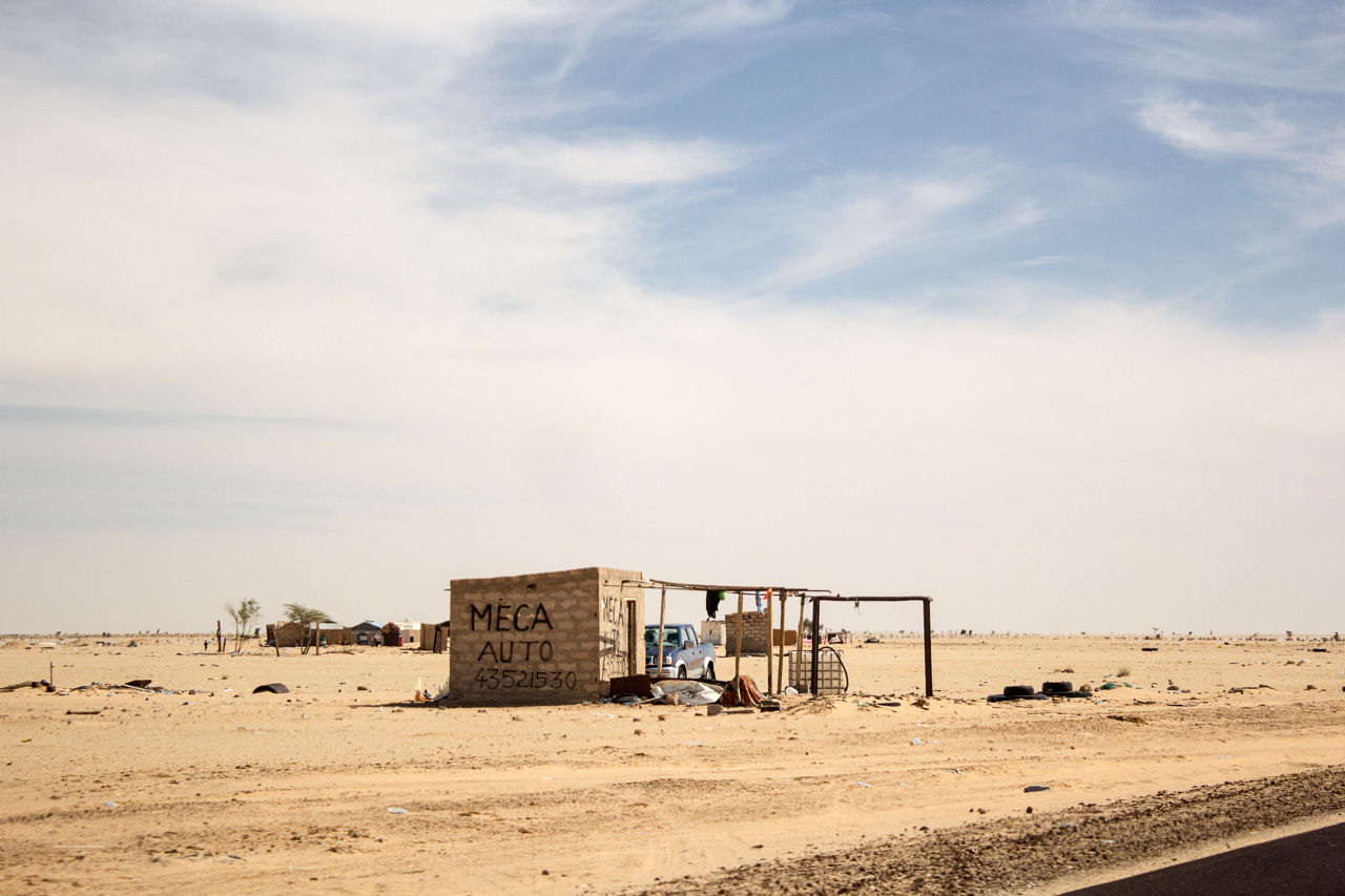 Tankstelle, wo alle Teams sich zur Einreise nach Mauretanien