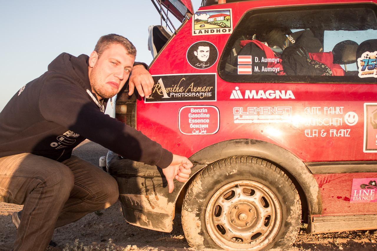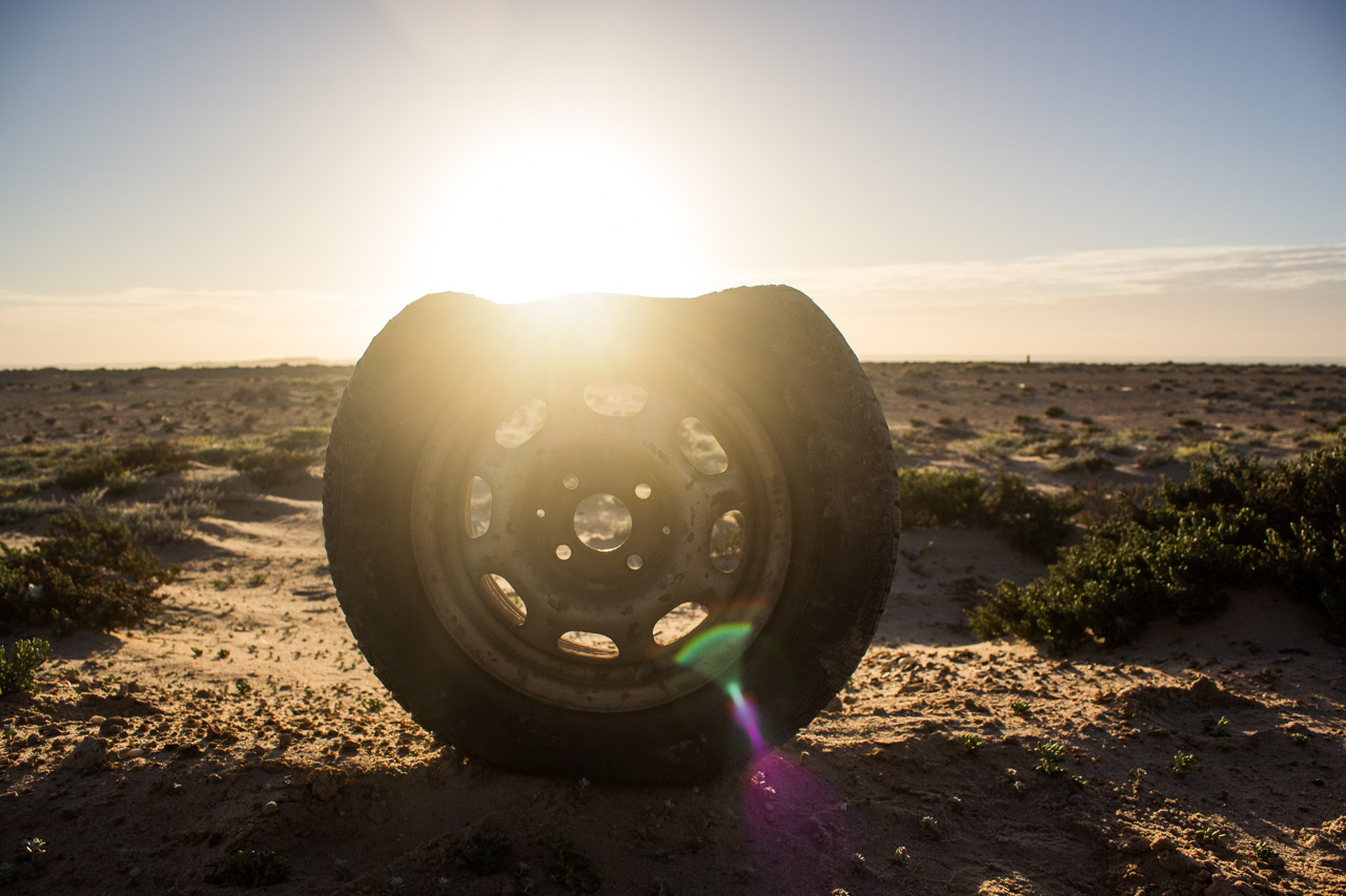 So sieht ein platter Reifen im Sonnenaufgang aus :)