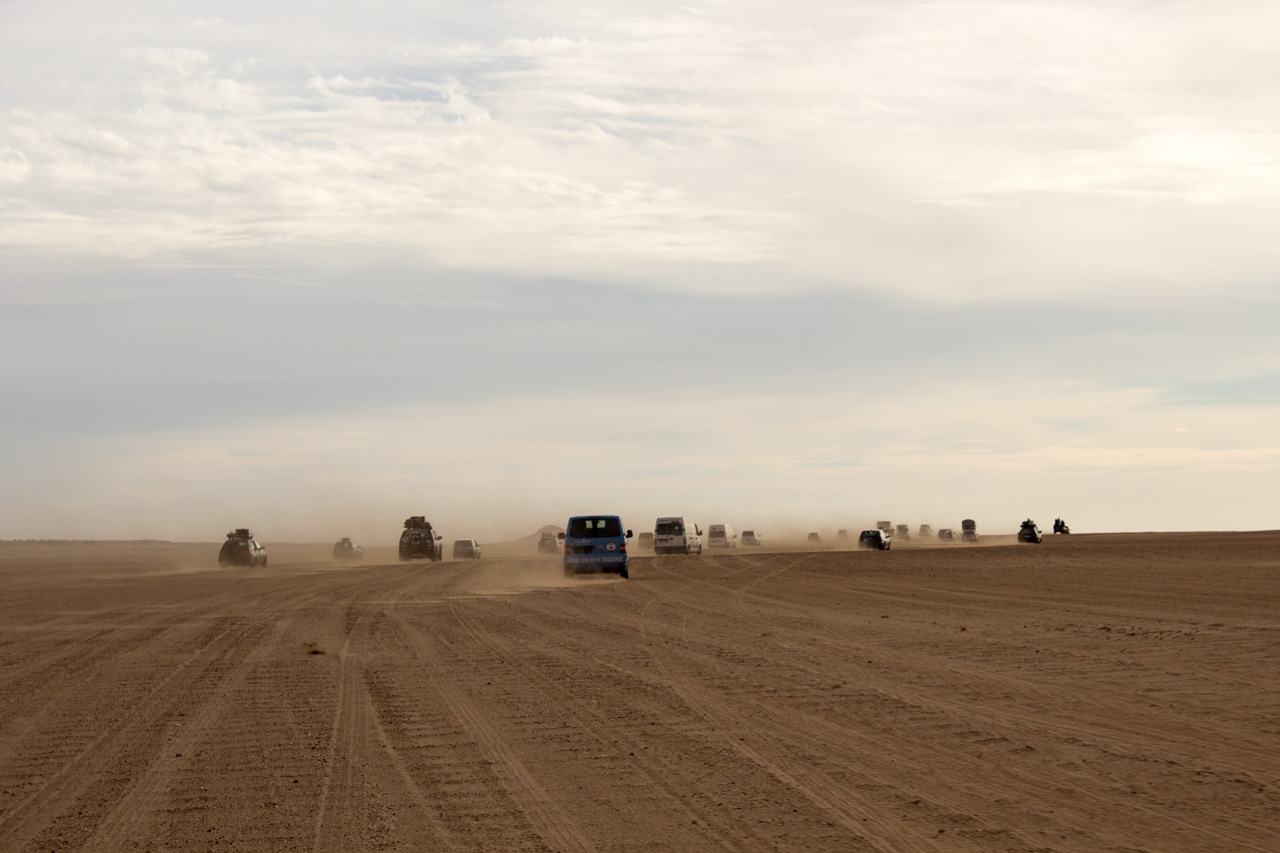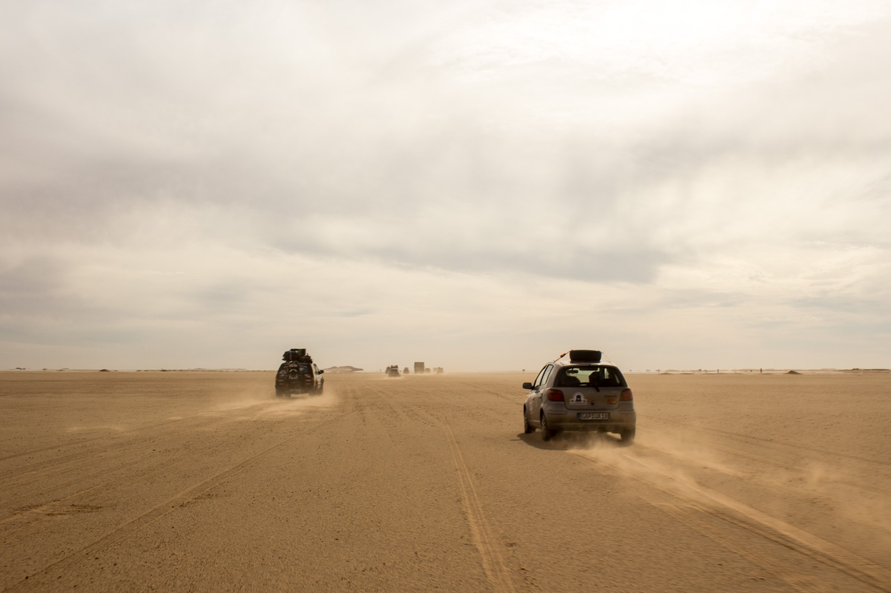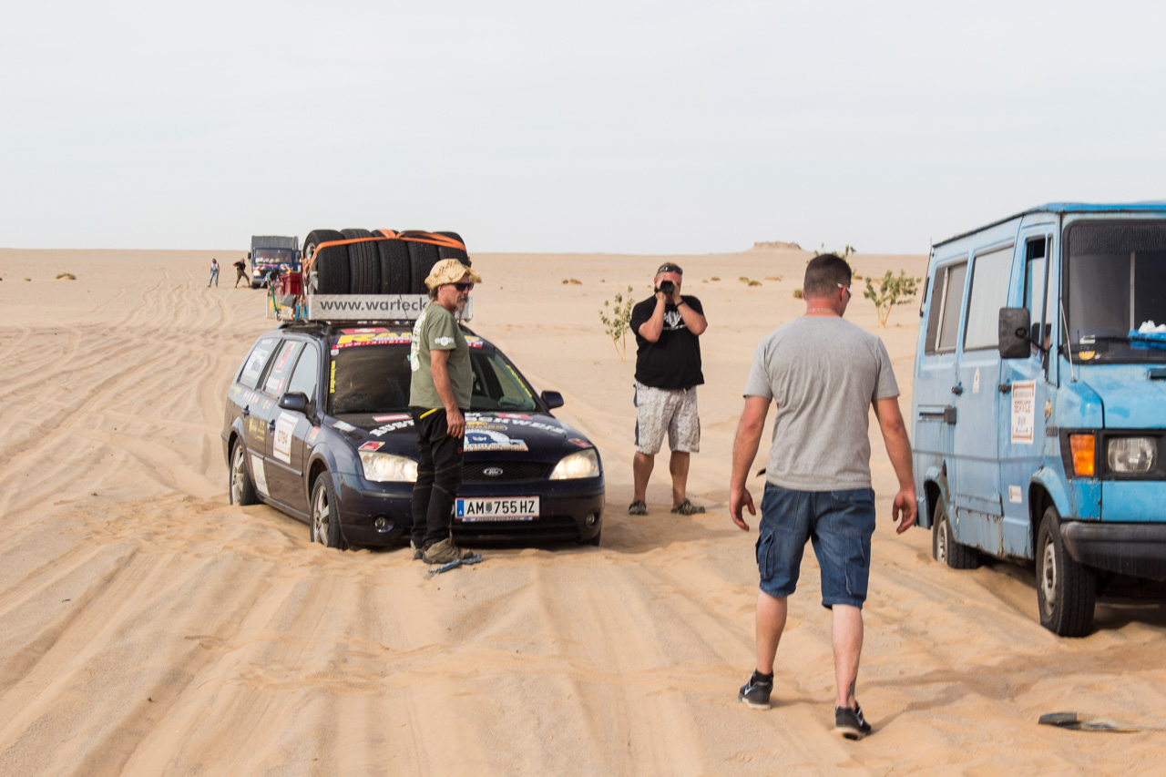 Doch nach rund 15km steckten schon ein Viertel der Autos im Sand!