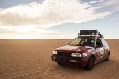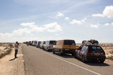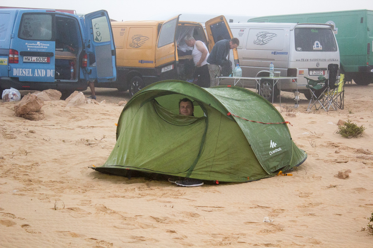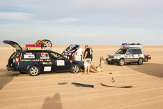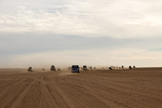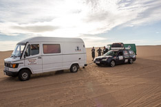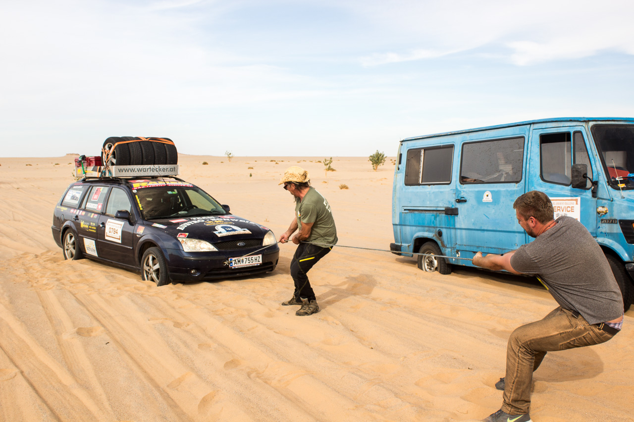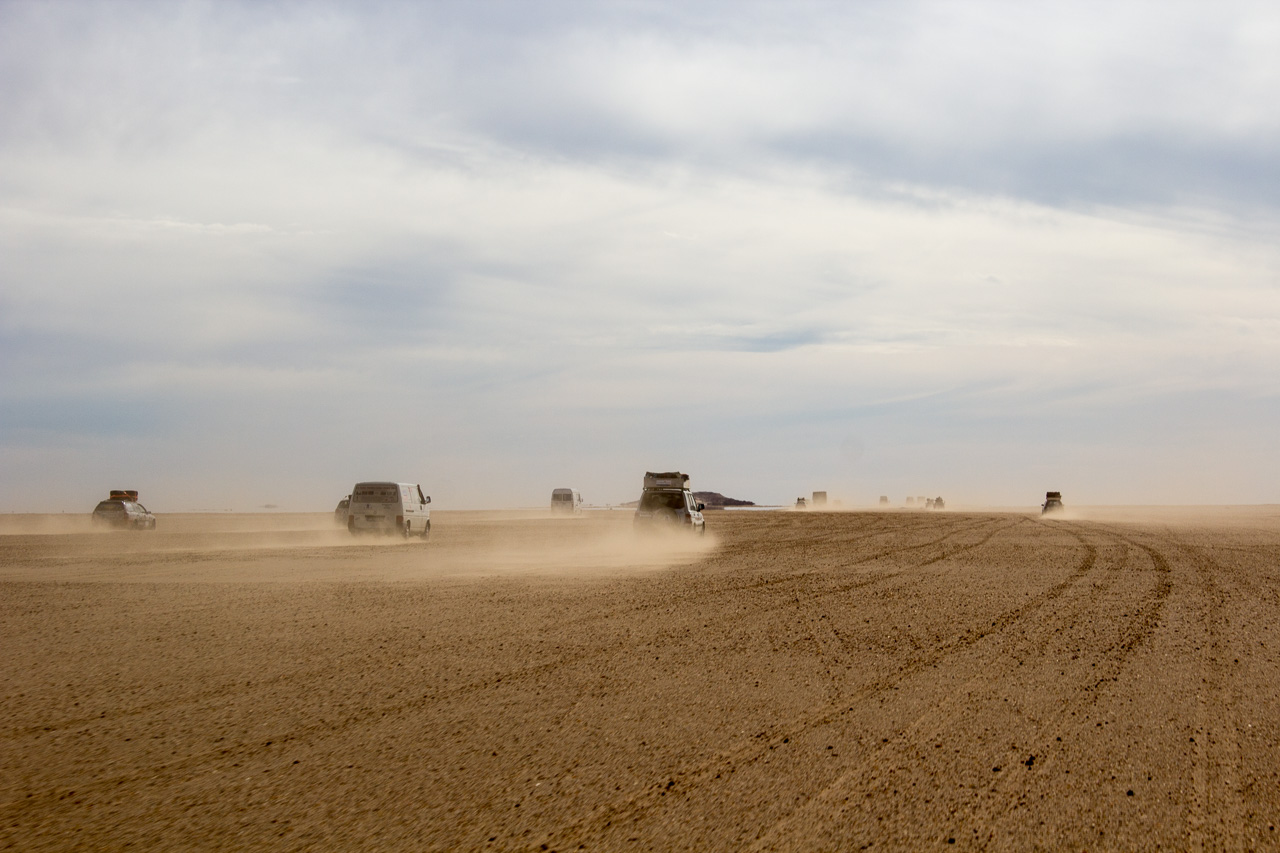 Doch nach rund 15km steckten schon ein Viertel der Autos im Sand!