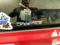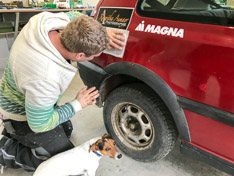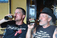 Bevor wir dann zurück auf die Straße kamen mussten wir noch den abenteuerlichen Überstieg von Boot zu Steg überwinden, da die Yacht über einen etwas eigenwilligen Liegeplatz verfügte, und keine klassische Gangway hat. Wie auf den Fotos demonstriert haben wir dabei mehrere Male unser trockenes Gepäck riskiert, aber am Ende ging alles gut!