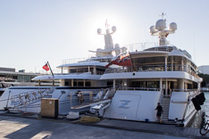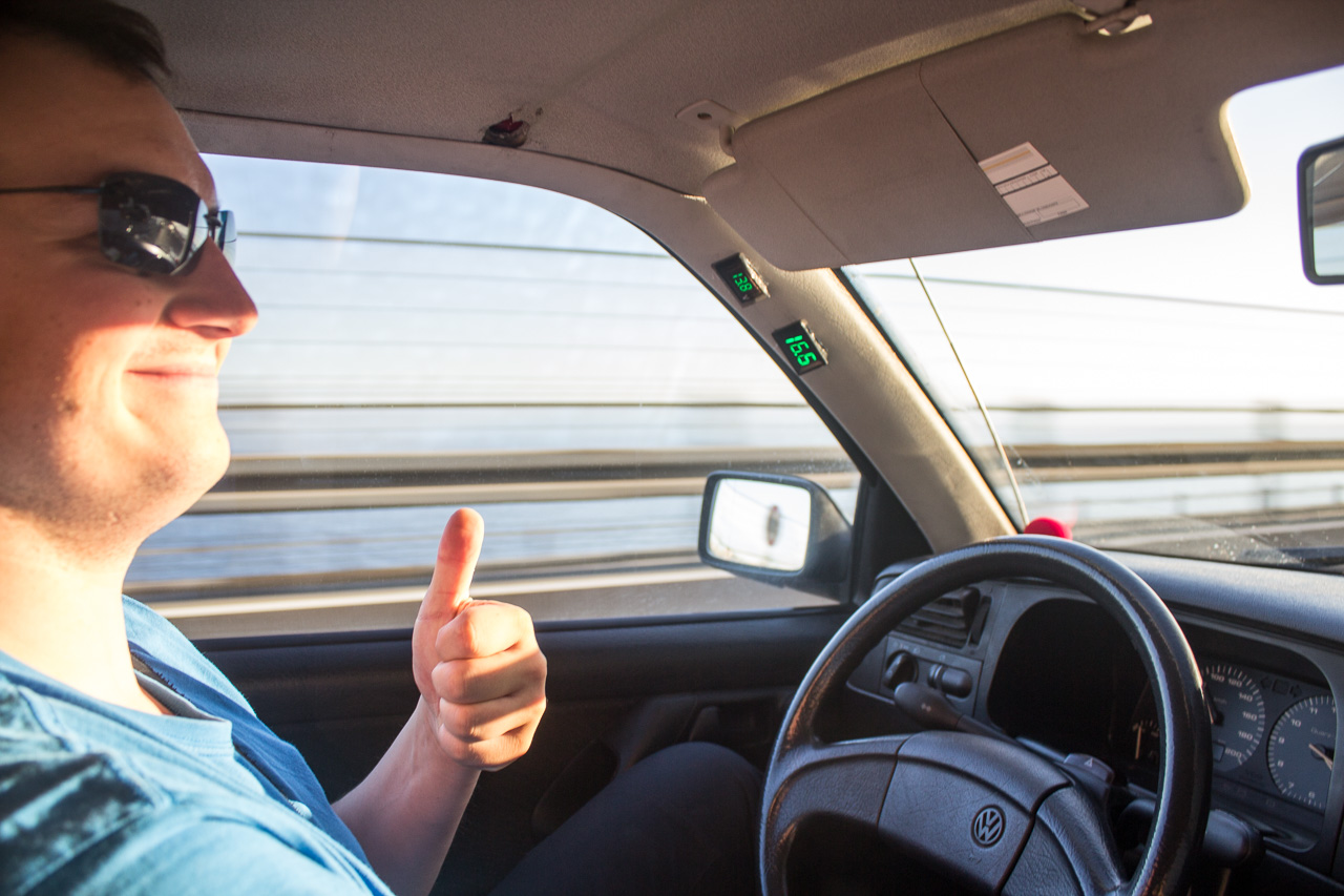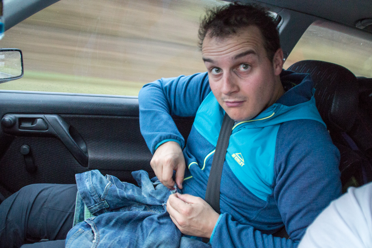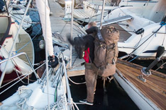 Bevor wir dann zurück auf die Straße kamen mussten wir noch den abenteuerlichen Überstieg von Boot zu Steg überwinden, da die Yacht über einen etwas eigenwilligen Liegeplatz verfügte, und keine klassische Gangway hat. Wie auf den Fotos demonstriert haben wir dabei mehrere Male unser trockenes Gepäck riskiert, aber am Ende ging alles gut!