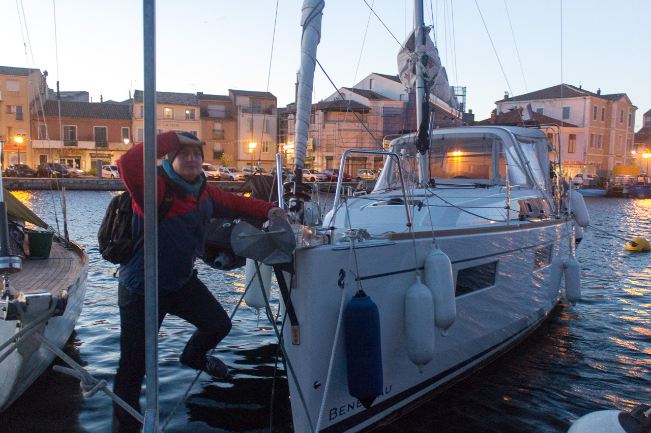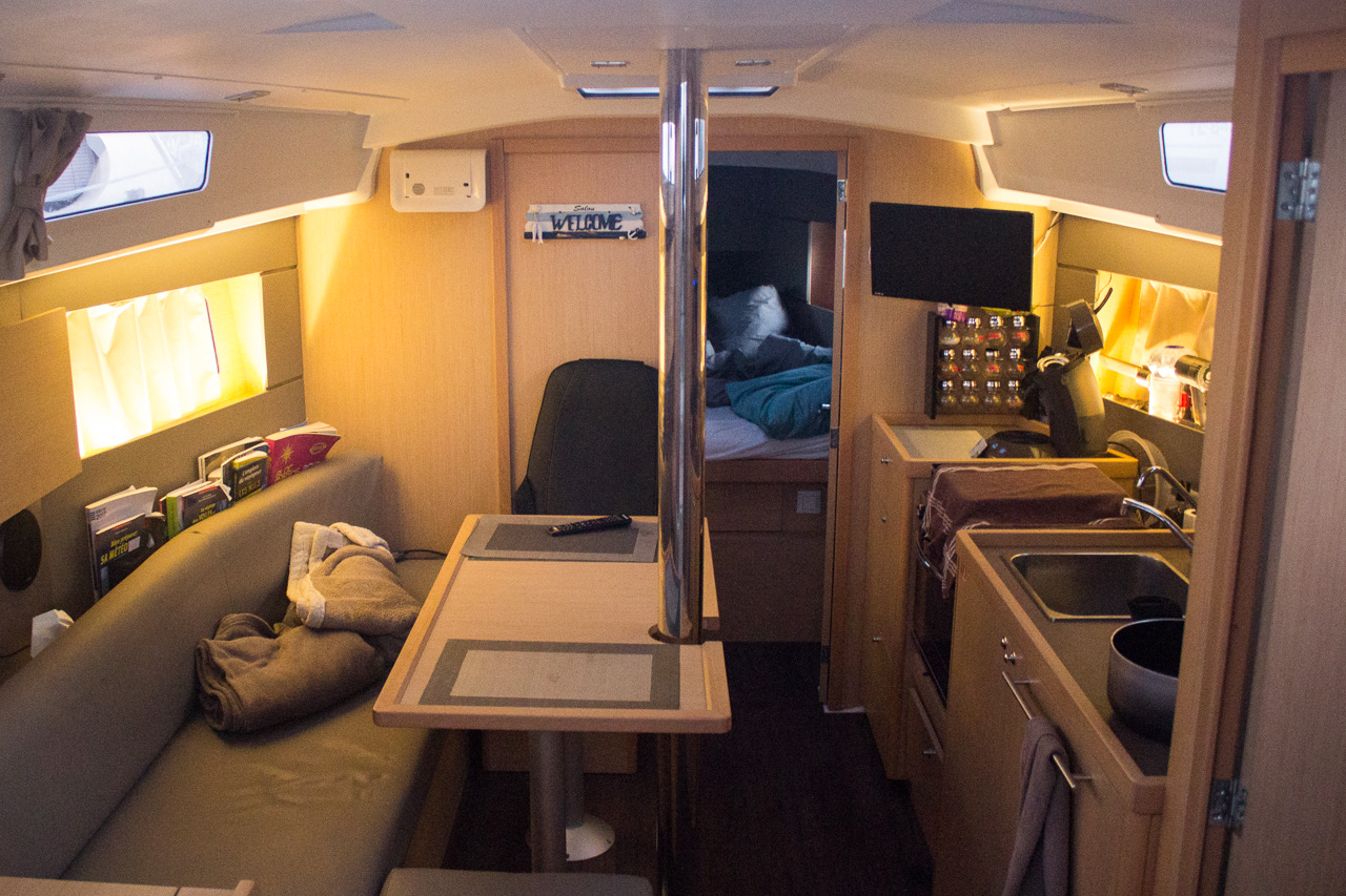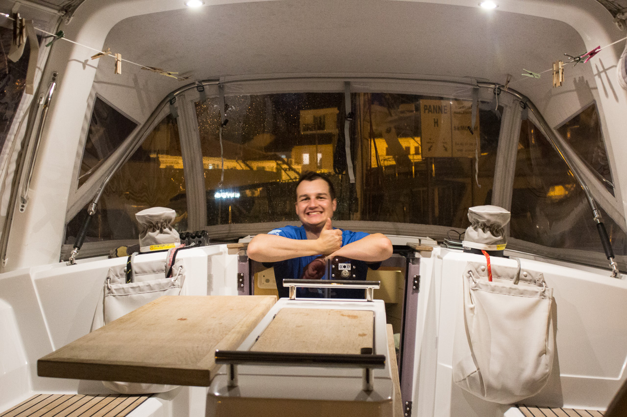Per Zufall haben wir auf AirBnB ein Segelboot im Hafen von Martigues gefunden, welches zur Übernachtung angeboten wird. "Sofort buchen!" dachten wir uns, und haben das auch gleich gemacht! Nach spannenden eineinhalb Stunden kam dann die erfreuende Nachricht: Der junge, nette, alleinstehende Tanklastwagenfahrer, der statt einem Haus gebaut ein Boot gekauft hat, nimmt uns gerne für die Nacht an Bord! Er war sogar während der Nacht auf LKW-Fahrt, daher hatten wir die 2016 gebaute Segelyacht komplett für uns alleine!