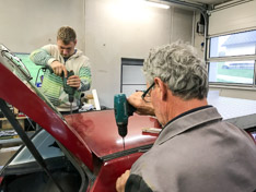 Endlich war es soweit: Brunhilde bekommt ein neues Haupt! Aus Marketing-/Budget-/Abenteuer-/Ausweglosigkeits-/"Wir können das selber"-technischen Überlegungen haben wir uns dazu entschossen, dieses Vorhaben ganz auf eigene Faust und ohne fremde Hilfe von etablierten und erfahrenen Herstellern von Dachtrage-Apparaturen durchzuziehen!