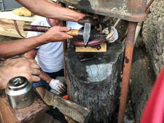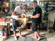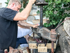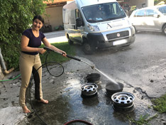 Zuerst stand eine gründliche Naßwäsche auf dem Programm, um danach mit Poliermaschine und Fingernagelfeile die Details zu überarbeiten. Mit vereinten Kräften (von Chef-Strategen Christian und Team-Chefköchin Anna) machte Brunhilde eine optische Verwandlung durch, die an diverse Naturwunder und Märchenerzählungen erinnern lässt.